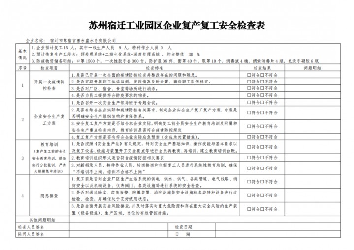 四是组织一轮联合执法行动。园区安监局联合消防大队成立复工复产安全生产工作检查组,采取“四不两直”,直插企业生产现场,形成高压监管态势,对天御减振器、苏州电瓷厂等企业开展联合执法,督促企业按照“返岗人员安全到位、设备运行安全到位、生产环境安全到位”的要求,落实安全生产各项工作,堵塞安全漏洞,严防安全生产事故发生。