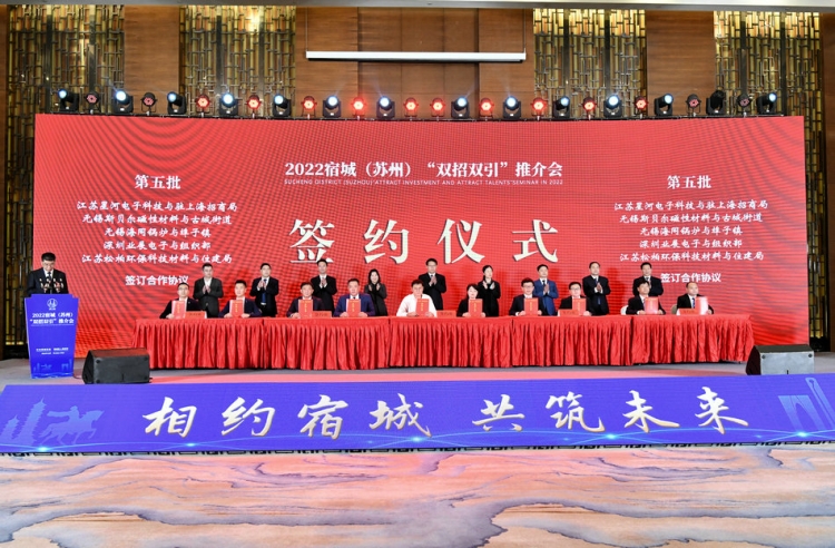 10月26日,2022 宿城(苏州)“双招双引”推介会在苏州举办。区委副书记、区长顾宇在推介会上倾情推介宿城。会议还举行了项目签约仪式,共签约项目34个,协议总投资178 亿元,项目包含产业投资类项目和人才项目。