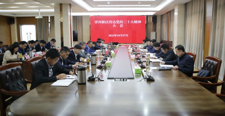 10月27日下午,洋河新区召开传达党的二十大精神大会。市人大常委会副主任、洋河新区党工委书记冯如意参加会议并讲话,区党工委副书记、管理办公室主任姜海青主持会议。