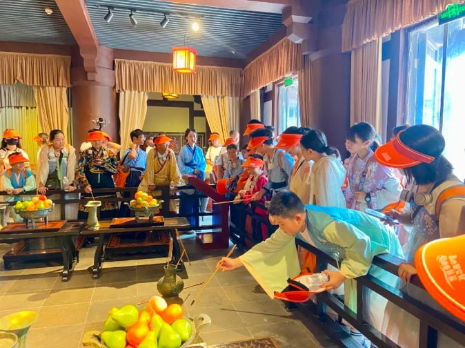 开营仪式结束后,营员们身着楚服实地参观了项王故里,观看了历史舞台剧《鸿门演义》,在接下来的几天里,还将分赴宿迁各地开展活动。