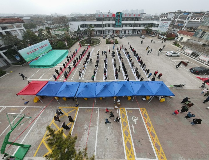 一声号令,全员行动!为保障此次核酸检测高效有序进行,洋河新区11日晚连夜安排部署,在核酸检测点布置了等待区、检测区、一米间隔带等。全区共设置了55个核酸检测点。在这场与病毒赛跑的抗疫斗争中,洋河卫健系统迅速响应,全体机关干部、村支两委干部、村民小组组长、网格员和志愿者等人员紧急到岗,洋河公安全警出动守护检测现场,全区党员干部冲锋一线,全力保障居民核酸检测顺利开展。