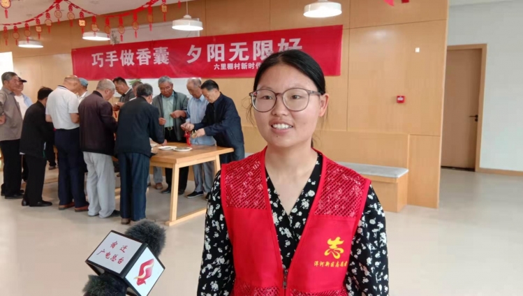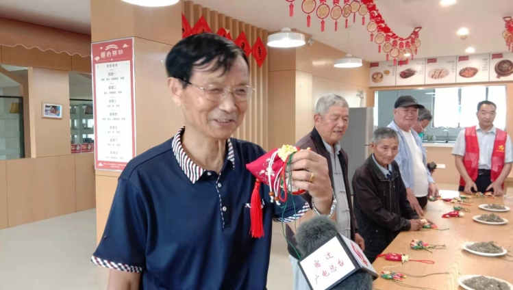 咱们香囊里面装有艾草、青蒿、茵陈等中草药,它可以驱蚊虫。在端午节来临之际呢,我们也和老党员一起做香包,感受端午的一个民俗氛围,也能感受到我们党组织的温暖。