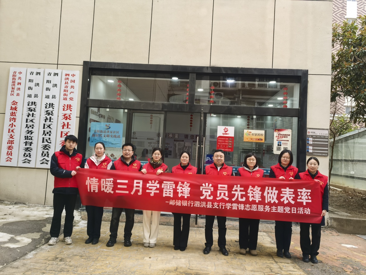 中国邮政储蓄银行泗洪县支行为深入学习贯彻党的二十大精神,大力弘扬雷锋精神,践行社会主义核心价值观,3月5日,邮储银行泗洪县支行组织青年党员深入洪泵社区,开展“情暖三月学雷锋,党员先锋做表率”主题党日,以实际行动传承雷锋精神,展现青年党员风采,传递社会正能量。