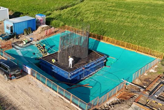 据了解,本次施工的承台长8.8米,宽6米,高2.5米,设计方量132方。为确保首个承台顺利浇筑,项目部根据首件工程施工要求,对施工工艺、质量要求、安全管理、混凝土拌合和运输等方面进行了多次试验,从技术准备、安全卡控、物机保障方面定人、定岗、定责,全面做好浇筑前各项准备工作。同时严格按照工序科学组织施工,安排专人盯控承台模板、预埋件、钢筋保护层、混凝土质量及振捣工艺等关键卡控点,确保本次浇筑内实外美。