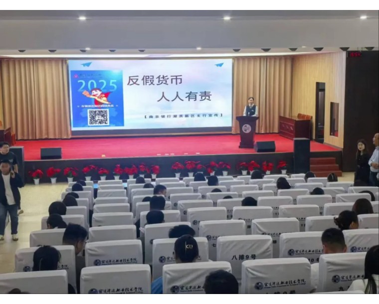 开展进校园宣传。南京银行宿迁湖滨新区支行走进宿迁泽达职业技术学院,面向教师和学生开展“反假货币 人人有责”主题宣传活动。活动现场发放宣传折页300余份。