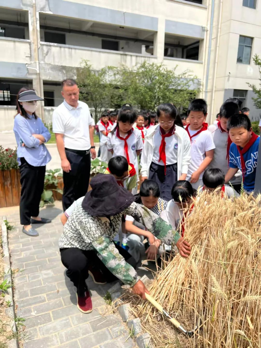6月7日上午,王红正副书记组织政教处带领四(1)班全体学生开展收割麦子活动,在王书记与种植园指导员毛大姐的指导下,孩子们纷纷有序拿起镰刀,收割麦子。
