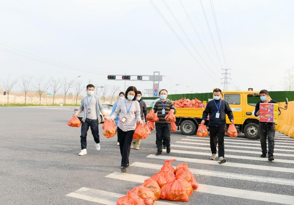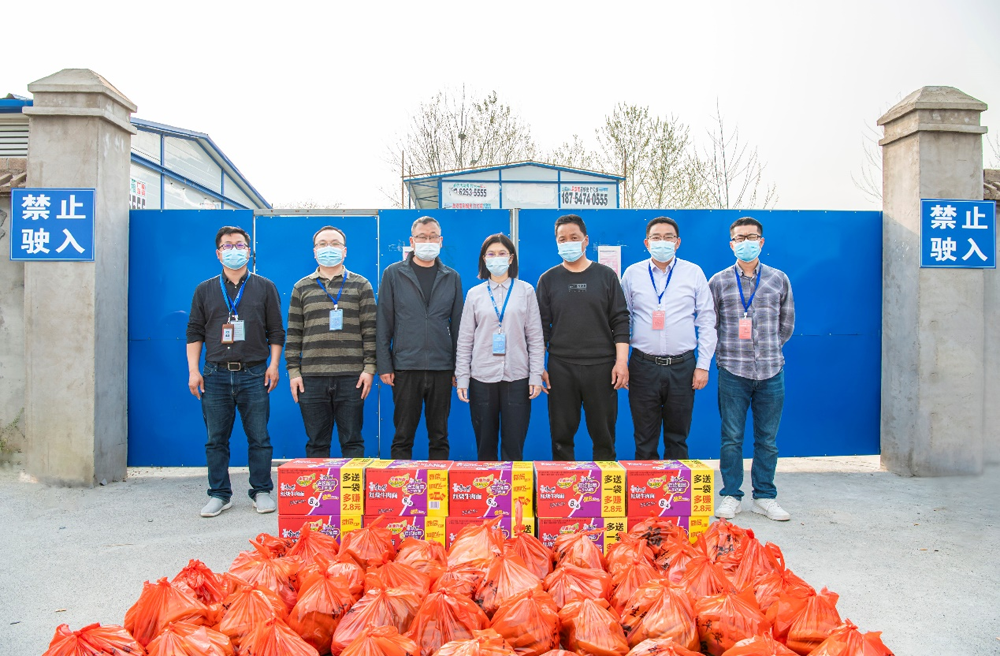 在宸悦花园工地生活区,慰问组一行详细了解工地静态管控、留守人员数量和后勤保障等情况,为他们送去口罩、酒精、泡腾片等防疫物资和方便面、蔬菜和水果等生活物资,叮嘱他们要合理安排时间,在做好自身防护的同时,毫不松懈落实好工地静态管控各项举措,统筹做好疫情防控和消防安全工作,为筑牢园区疫情防控网络贡献“工地力量”。