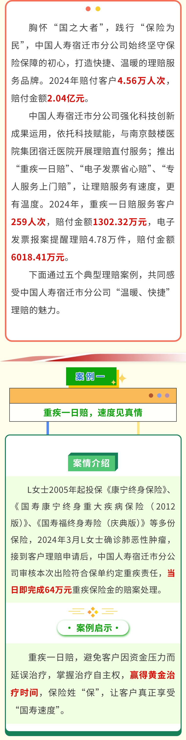培本固基 科技赋能 真诚服务 温暖理赔 中国人寿宿迁市分公司以“国寿速度”守护百姓美好生活