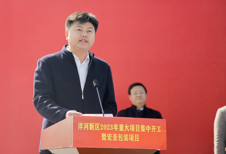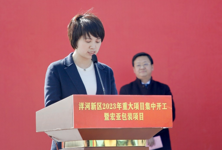 为扎实推进重大产业项目建设,营造项目建设的浓厚氛围,3月2日上午,在宏亚包装项目现场,洋河新区举办 2023 年重大项目集中开工暨宏亚包装项目奠基仪式。市人大常委会副主任、洋河新区党工委书记冯如意出席开工仪式并宣布项目启动建设,市文联副主席胡立权,江苏宏亚包装科技有限公司董事长杨丽君,区党工委副书记、管理办公室主任姜海青参加开工仪式,区党工委委员,洋河镇党委副书记、人大主席张克喜主持开工仪式。