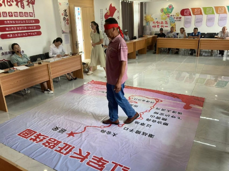 在重走长征路游戏环节,大家蒙上双眼,重走一遍长征路线。在短时间内强化了对长征路线的记忆,加深了对长征路上每个重大历史事件的理解。