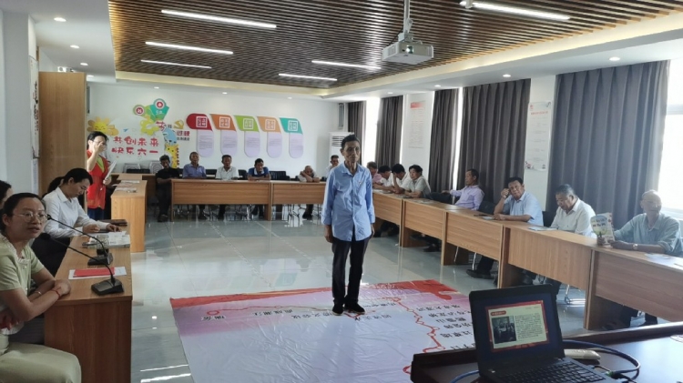 在长征路线图上,每一个重要的历史节点,都对应一段烽火硝烟的战斗。本次重走长征路活动,是在地面上铺上长征路线图,然后一名退役军人,站上一个历史节点,来读对应的那段历史。站上节点的那一刻,每个人都神情严肃,庄重诉说。老军人殷召贤说:“中国共产党真的太伟大了,长征路上的军人真的了不起,我们这辈军人这次重温长征路,在思想信念上又是一次洗礼,我们要坚定初心,不忘过去。”