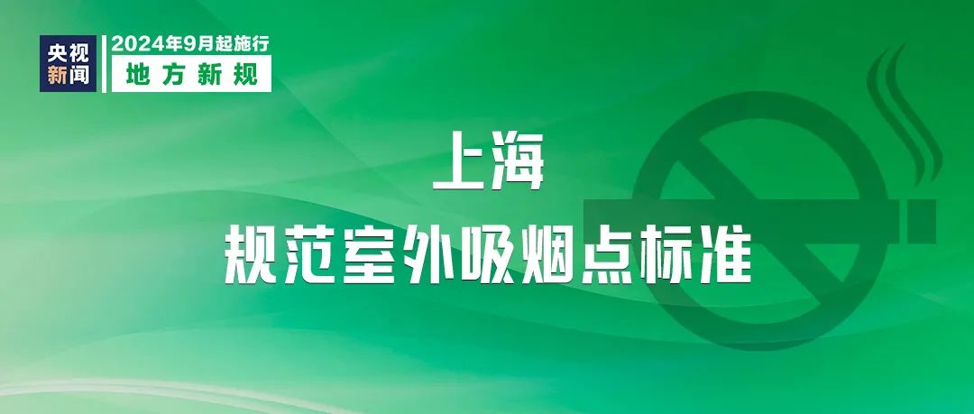 上海市地方标准《室外吸烟点设置与管理要求》9月1日起实施,规定了室外吸烟点的选址、设施、标识、健康提示等设置要求,明确了室外吸烟点的日常巡检与维护等管理要求,这也是国内首个室外吸烟点的标准规范。
