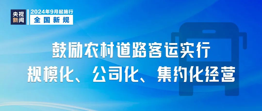 《农村道路客运运营服务指南(试行)》9月1日起实施,鼓励农村道路客运实行规模化、公司化、集约化经营。农村道路客运经营者需取得道路旅客运输经营许可。