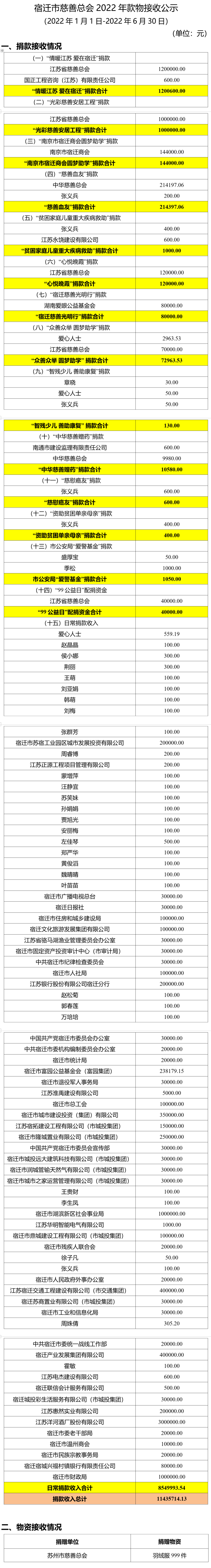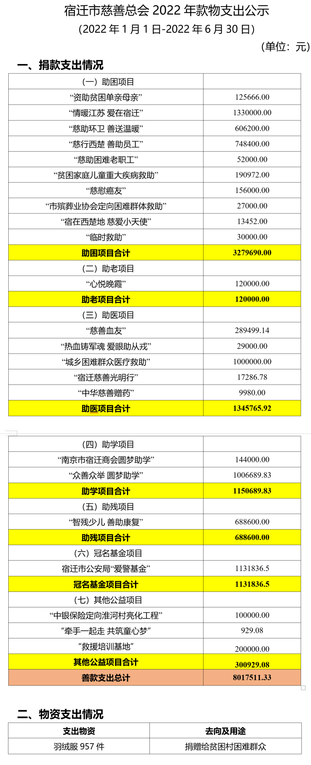 根据《中华人民共和国慈善法》规定,慈善组织应当依法履行信息公开义务,信息公开应当真实、完整、及时。现将2022年1月1日-2022年6月30日捐赠款物接收及支出情况公示如下,此次公示不包含定向疫情防控款物捐赠收支情况,疫情防控款物捐赠收支情况已另行公示: