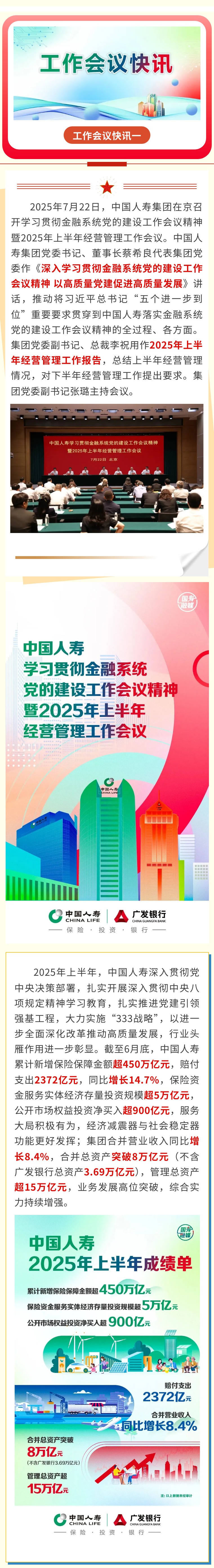 中国人寿召开学习贯彻金融系统党的建设工作会议精神暨2025年上半年经营管理工作会议