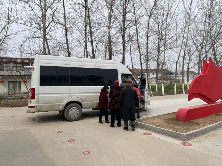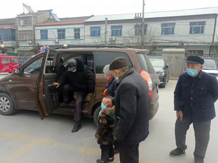 3月22日下午四点半,志愿者朱波开着7座小客车来到红庙村沈庄二组。因为和各村小组组长提前进行了预约,大家也早早准备好身份证在家门口等待乘车。遇到上车不方便老人,朱波就赶紧帮忙搀扶,等老人坐稳后再慢慢系好安全带。每到一家都是如此,带满6人就赶往医院接种。对于志愿者们的热心服务,村民很感激。