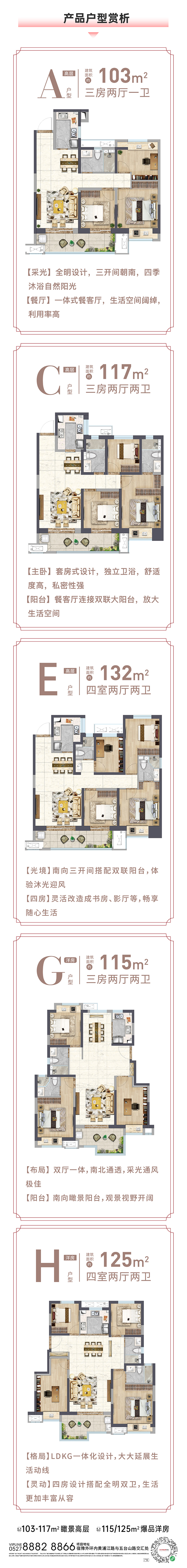 建面约103-132㎡瞰景高层、115-125㎡进阶洋房