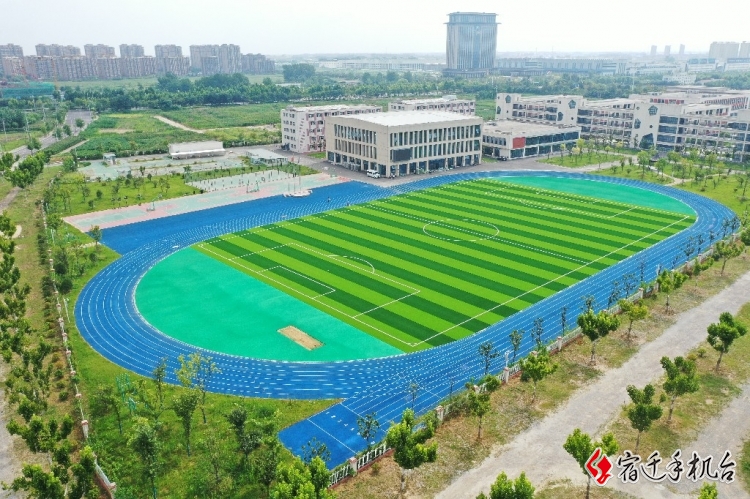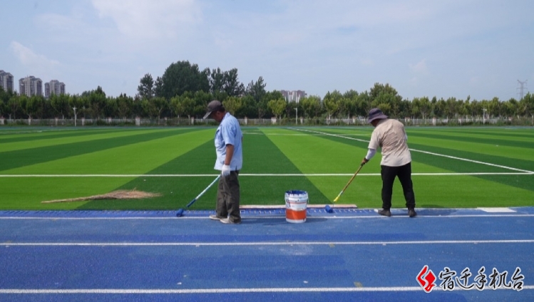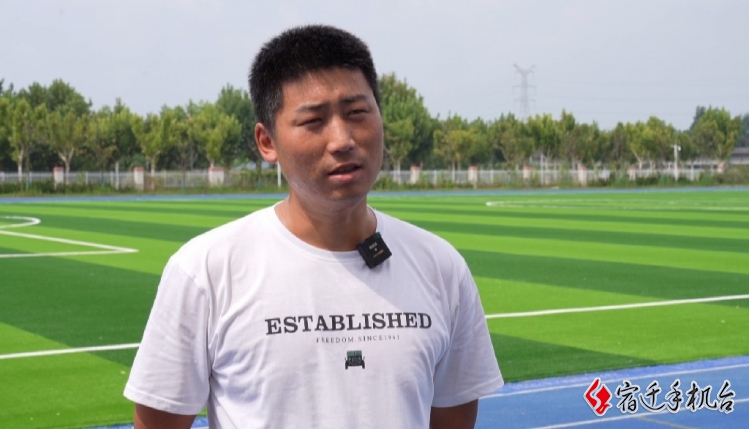 宿迁市永峰体育有限公司技术员 童鑫:基本上已经完成,现在开始收尾工作。我们这个草是免充沙的,底下是带缓冲垫的,这样可以更有效的避免学生摔倒,磕磕碰碰,防止伤到孩子。