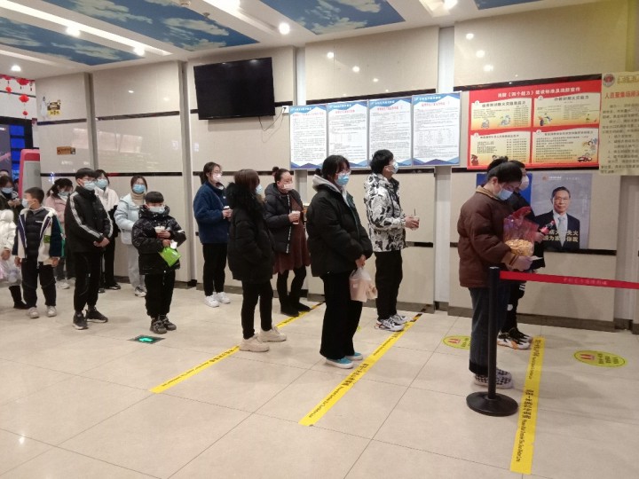 因为影片口碑较好,春节期间,洋河新区中影东方国际影城每天仅《长津湖之水门桥》日均排片量就在14场,观影1000人,票房6万元,占据全天排片率的30%。大家在幸福观影的同时也配合做好疫情防控工作。
