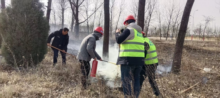 鲍志成果断迅速拨打119消防救援电话,告知火情,同时喊来附近香山红叶项目组工人,大家一起拿来工地安防器材中的防火锹、灭火器等冲向火源上方,通过挖土掩埋的方式最大限度控制火势,并与随后赶到的消防救援队合力扑救,最终15分钟后明火被全部扑灭。幸运的是由于扑救及时,过火面积只有400平方,主要为落叶和枯枝燃烧,并没有对旁边货车停车场造成影响。