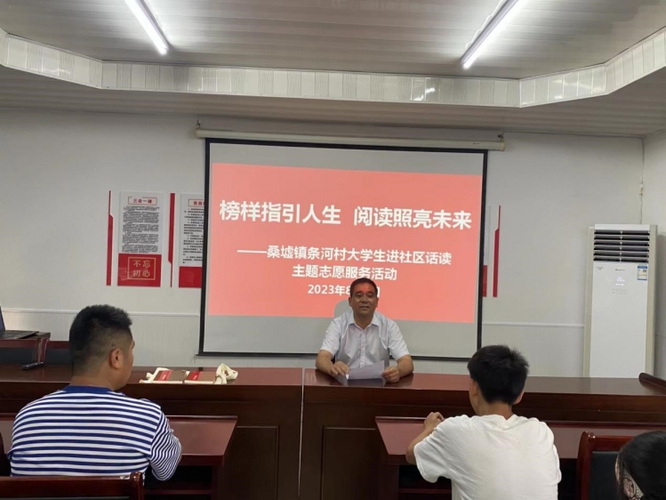 为深入推进全民阅读活动开展,充分发挥乡村大学生、准大学生起到阅读榜样作用,宣扬阅读理念和阅读价值,8月8日下午,桑墟镇条河村党支部开展“榜样指引人生 阅读照亮未来”大学生进社区为主题的志愿服务活动。