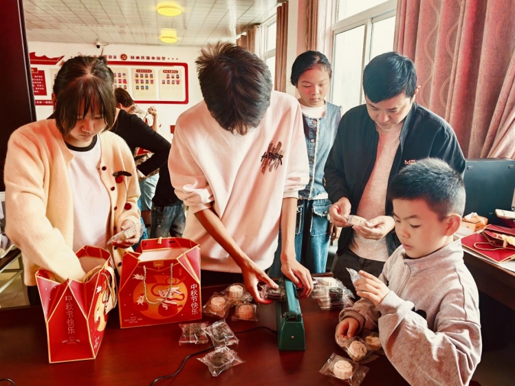 欧岗村开展“家国同庆,共享喜乐”主题活动,巧妙融合“爱国情”与“团圆意”。现场特设“祖国祝福角”,孩子们用彩笔在明信片写下真挚祝福,卡片贴满展板。月饼制作环节,志愿者手把手指导揉面、裹馅、压模,孩子们专注投入,满是成就感。印着“中秋”“团圆”的月饼成型后,大家相互分享,在动手乐趣中传递邻里温情,营造出喜庆祥和、睦邻友好的村居氛围。