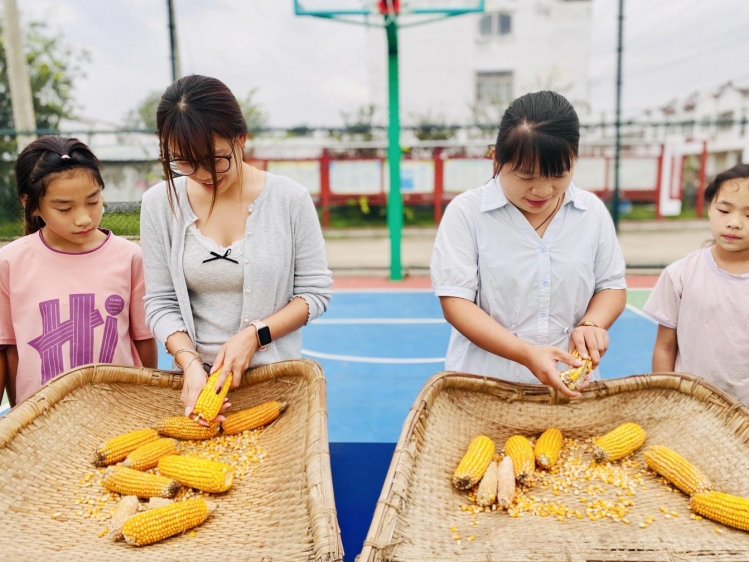 宋桥村以“我们的节日”为载体,组织群众共庆祖国生日,用创意手工诠释“爱国情”。剪纸环节,红纸在大家手中翻转折叠,剪刀起落间,鲜红的五角星、饱满的爱心跃然纸上;“农物拼画”环节,玉米、红豆、黑米等农作物被大家巧妙排列,不仅拼出鲜艳的中国国旗与完整的中国地图,更将“强国”二字生动呈现,送上最真挚的生日祝福。
