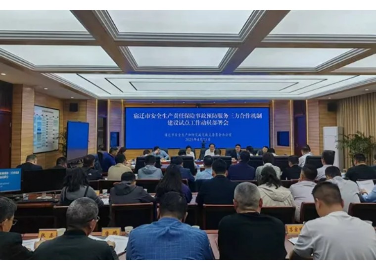 4月23日,宿迁市安委办组织召开全市安全生产责任保险事故预防服务三方合作机制建设试点工作动员部署会。宿迁市分公司主要负责人刘亮受邀出席,并在会上发表专题发言。