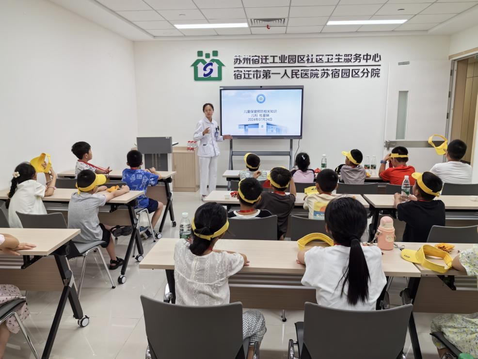 为进一步加强园区暑期医疗卫生健康教育工作,增强未成年人卫生保健意识,7月24日,苏宿工业园区社区卫生服务中心联合园区社工委,组织园区暑托班的小朋友们走进社区卫生服务中心,学习卫生知识,感受卫生文化。