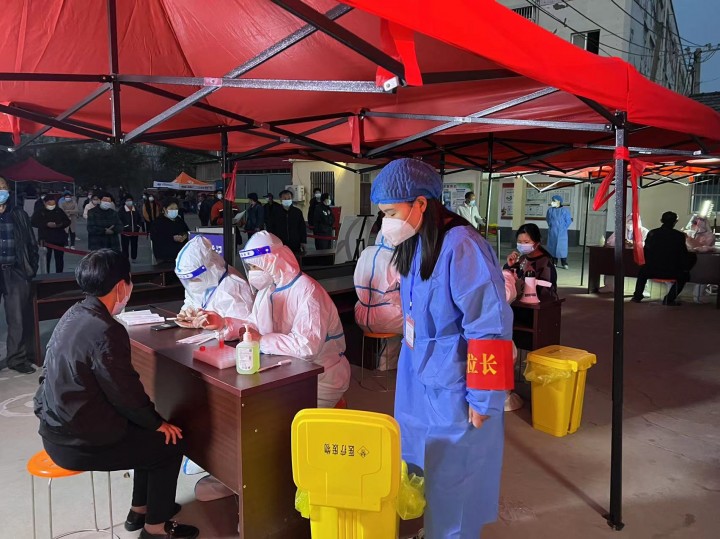 在现场,我们看到一身厚重防护服,满头大汗但仍一丝不苟耐心登记采样的医护人员;看到身穿一级防护服,用嘶哑的声音提醒群众带好口罩保持距离遵守纪律的工作人员;看到协助工作人员宣传发动、维持秩序的“红马甲”;看到走村串户、逐一敲门提醒群众抓紧做核酸的社区党员;看到了提前备好“宿康宝”预约码,自觉佩戴口罩保持距离、不聚集不交谈的群众…守护一线的医护人员、维持秩序的工作人员、乡间小道上宣传发动社区党员和积极配合的广大群众一起,谱写了团结一致共抗疫的最美画面,随处可见的党徽和红马甲又为这幅最美画面描上了最绚丽的颜色。
