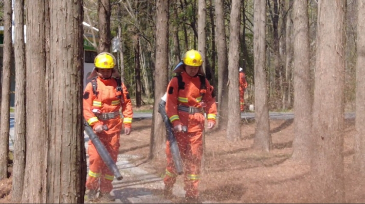 上午8点,嶂山林场森林防火专业队的队员们已全员到岗,分组深入重点林区与主要路口,开启一天的巡逻工作。他们身着防护服,背着灭火设备,仔细排查,不放过任何可能引发火灾的隐患。 嶂山林场森林防火专业队队长王刘阳介绍说,目前防火队共有队员12名,针对当前防火形势,大家每天分组开展4次高密度巡逻。