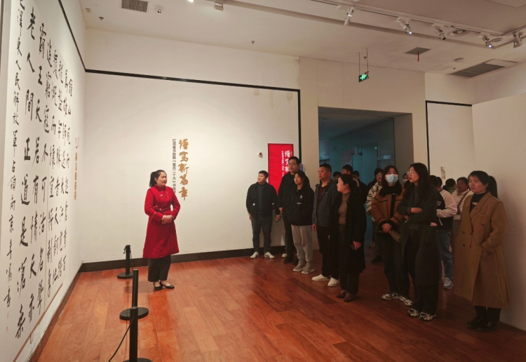 本次展览共展出472件书法作品,分为“伟人的情怀、光辉的思想、坚定的信仰、崭新的篇章”四大部分。现场40余名参展人员认真聆听讲解员的讲解,在作品前驻足观看、细心品味。