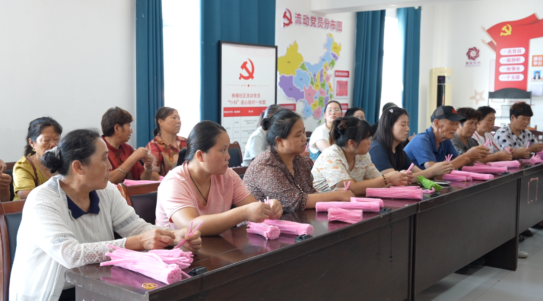 活动现场学习氛围浓厚。居民们通过系统掌握扭扭花制作技术后,可灵活安排时间居家制作,成品由社区统一回收并交付企业。这种“企业+社区+居民”的合作模式,有效盘活了社区闲置劳动力资源,特别是为需照顾家庭的妇女和老年人开辟了增收新渠道。