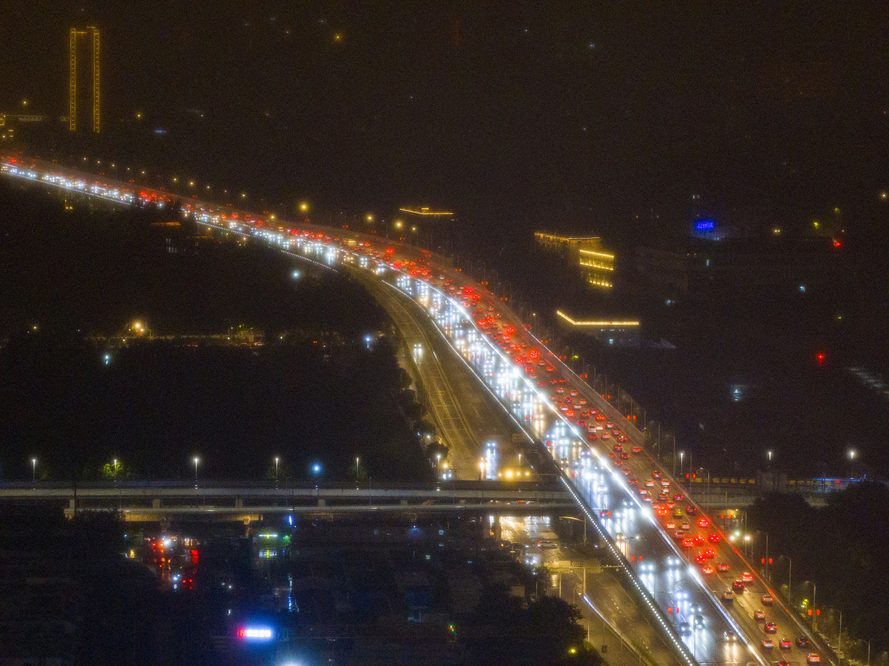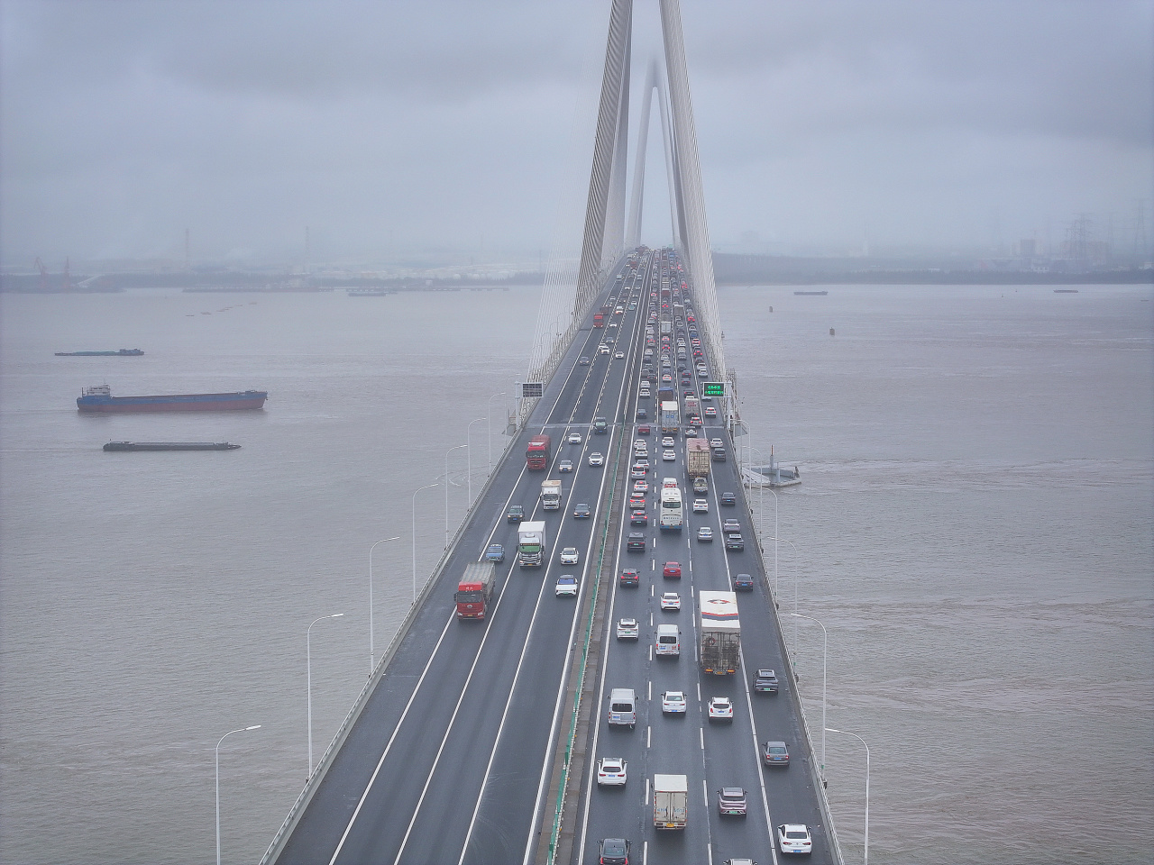 2024年10月6日,江苏南通,苏通大桥返程车流。当日是国庆假期第六天,苏通大桥迎来假期由北向南返程车流高峰,多路段车多拥堵缓行。视觉中国 图