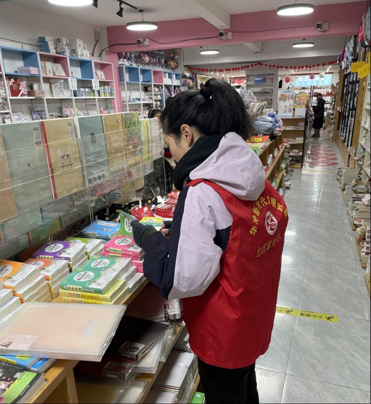 检查组实地走访在沭阳县第三高级中学、华冲初级中学、华冲实验小学等学校周边书店、文具店。工作人员对学校周边书店、文具店等场所进行全覆盖检查,做到排查“不漏一处”、打击“一处不放”。重点关注是否存在恐怖、暴力、封建迷信、低俗文化等危害未成年人身心健康的书籍及音像制品,对盗版教材教辅读物进行全面清理。同时,向商铺老板普及“扫黄打非”相关知识及政策,对检查中发现的问题现场提出要求、责令限期整改,有效预防和消除不良影响,切实为未成年人营造健康成长的文化环境。
