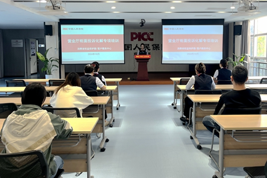 近日,为贯彻落实上级公司消保工作要求,进一步提升营业厅柜面人员的服务水平和投诉化解能力,人保财险宿迁市分公司客服部组织开展投诉化解专项培训,市区全体柜面人员参加了本次培训。