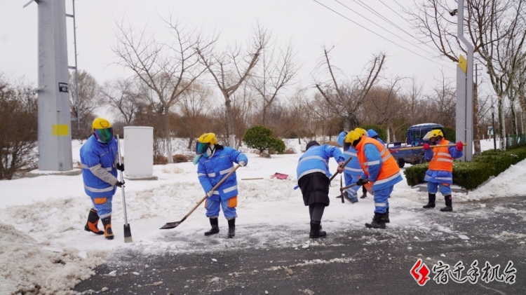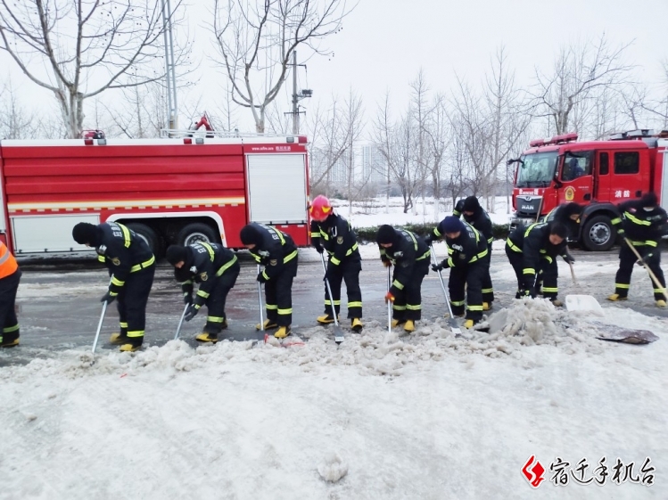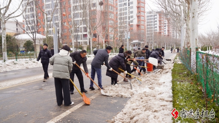 不光环卫人员奋战一线,新区各单位、部门工作人员600余人也加入到铲雪行列中来。在新城名苑社区,50余名消防指战员、区资规分局工作人员站成一排,手持雪铲合力铲雪,硬核推进。尽管天气寒冷,大家却干得热火朝天,没有一个退缩。大约两个多小时,200多米长的冰冻路面硬是被大家铲去了冰壳,车辆通行顺畅。