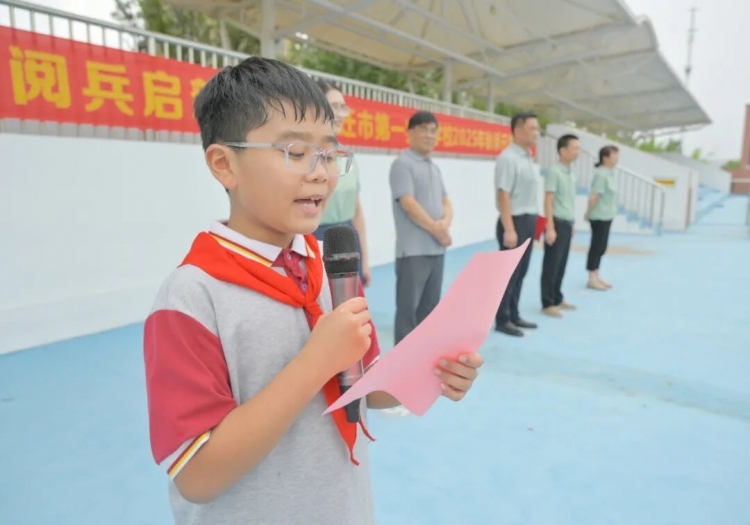 当日恰逢纪念中国人民抗日战争暨世界反法西斯战争胜利80周年的特殊时刻,开学典礼也融入了深刻的爱国主义教育内涵。少先队红领巾宣传员路皓然走上台前,以真挚饱满的情感朗读《写给英雄的一封信》。信中字字恳切,既有对革命先烈舍生忘死的崇敬,也有对英雄精神代代相传的决心,深情表达了新时代少年对英雄先烈的缅怀与追思,感染了在场的每一个人。