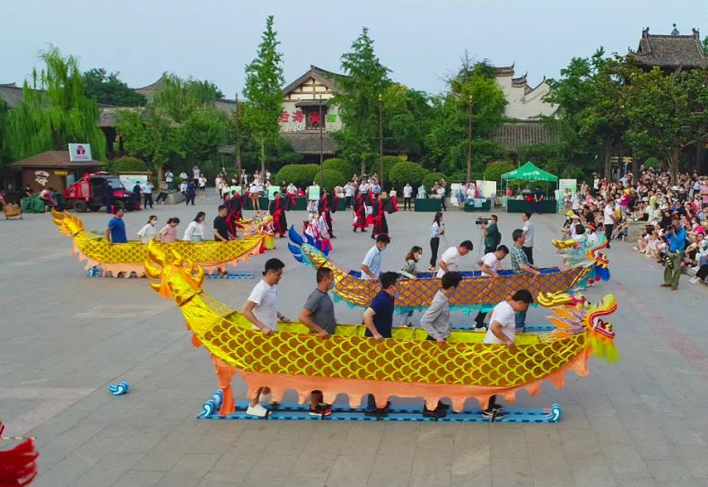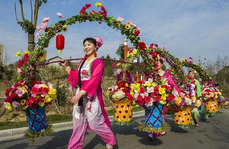 你可以看到欢快有趣的旱船庆端午;河蚌舞的独特舞姿;赶花车的热闹场景;挑花挑的优美律动;跑驴表演诙谐幽默;舞狮表演气势磅礴;大头娃娃的可爱形象;还有那淮红舞扇,舞动出宿迁的韵味与风情。无一不展现出独特的民俗魅力。