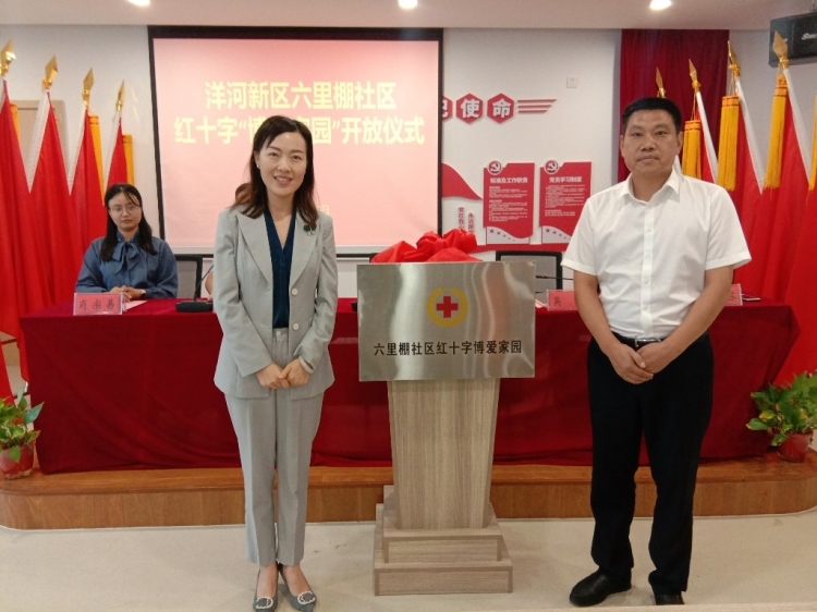 博爱超市的创建也得到了市红十字会的大力支持,在开放仪式上,市红十字会党组成员、副会长孙娟和洋河新区红十字会常务副会长吴羡共同为六里棚社区红十字“博爱家园”揭牌。