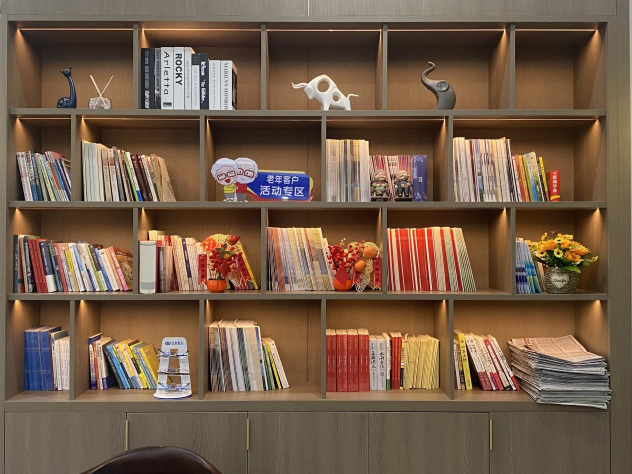 老年客户活动专区是网点内的一大亮点。整齐排列的书架上摆满了各类书籍,从养生保健到历史文化,从文学名著到休闲娱乐,每一本都是为老年客户精心挑选。专区内还摆放着充满生活气息的装饰品,可爱的老年人物摆件、寓意美好的花卉,为老年客户营造出舒适、惬意的阅读环境。在这里,老年客户在等待办理业务的过程中,可以沉浸在书的世界里,享受悠闲时光。
