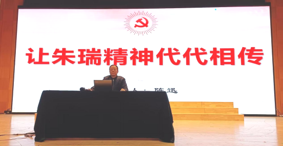 活动中,陈迅向同学们讲述了朱瑞将军波澜壮阔的一生,他的话语时而铿锵有力、时而柔情似水,与大屏幕上不断展现的老旧照片交相呼应,令同学们十分动容,纷纷拿起笔记录自己的感悟。
