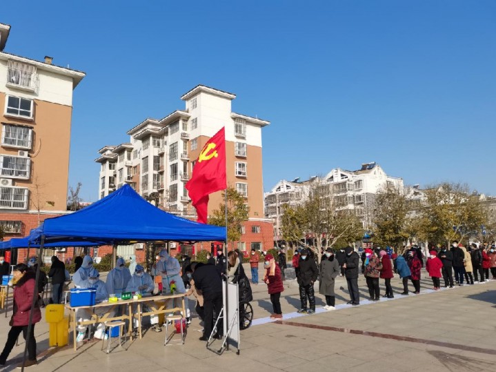 为坚决阻断疫情传播,助力全员核酸检测,洋河新区17个小区支部积极发挥前沿阵地作用,党员志愿者们齐心战“疫”,冲锋一线为社区居民筑起一道坚不可摧的“红色堡垒”,让党旗在疫情防控一线高高飘扬。