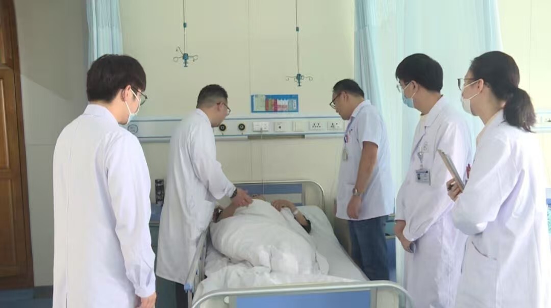 整个抢救过程中,我们大概有六七位医护人员在接力做心肺复苏,去接力抢救患者。整个持续按压时间大约有30分钟。在院领导和医务科的协调下,麻醉科、心内科、ICU的医护人员都过来参与抢救。因为过程比较快,所以他的脑组织损伤、缺氧损伤比较小。