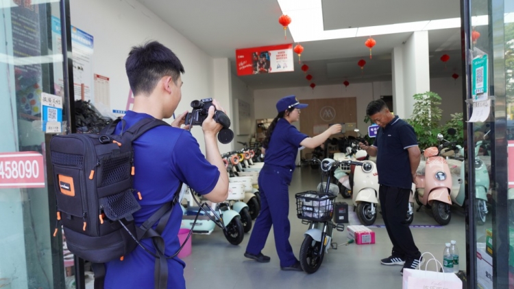 下午三点,在新城名苑小区大转盘处,洋河新区消防救援大队宣传员张曼曼戴上无线话筒在同事们的协助下便开始了长达1个多小时的消防安全直播活动。飞线充电、违规停放、占用消防车道,对于这些小区常见的电动车“违规行为”,一一对群众进行零距离劝导。