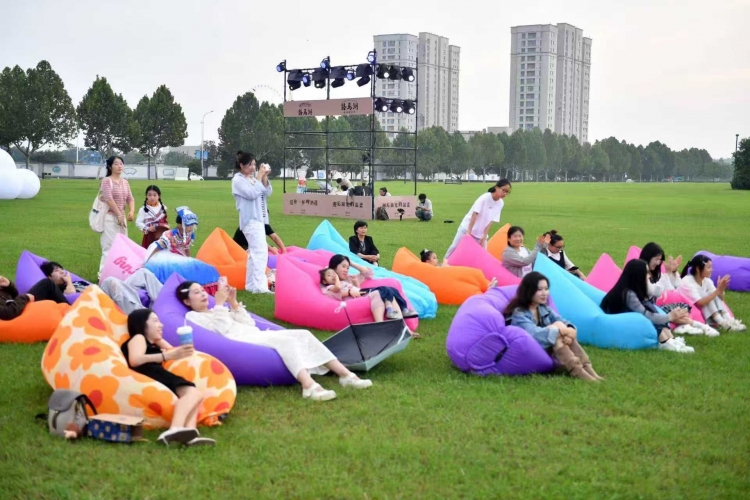 现场,不同于传统演唱会的拥挤与喧嚣,本次音乐会主打一个“松弛感”。广阔的草坪就是观众的席位,人们或坐在懒人沙发上,或倚在露营椅中,孩子们在不远处的草地上尽情嬉戏,欢笑声与舞台上的音乐声交织,构成了一幅和谐动人的生活图景。