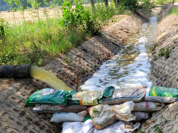 在张渡村蒋庄四组供水渠,由于这里地势较高,水稻灌溉很困难,为了化解这一难题,村里专门安装了一台抽水机,让村民不再担心地里用水。