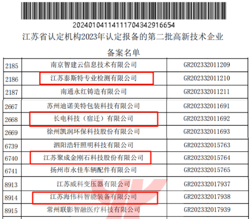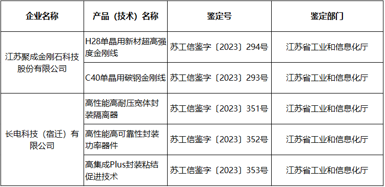 江苏聚成金刚石科技股份有限公司、长电科技(宿迁)有限公司复审通过。