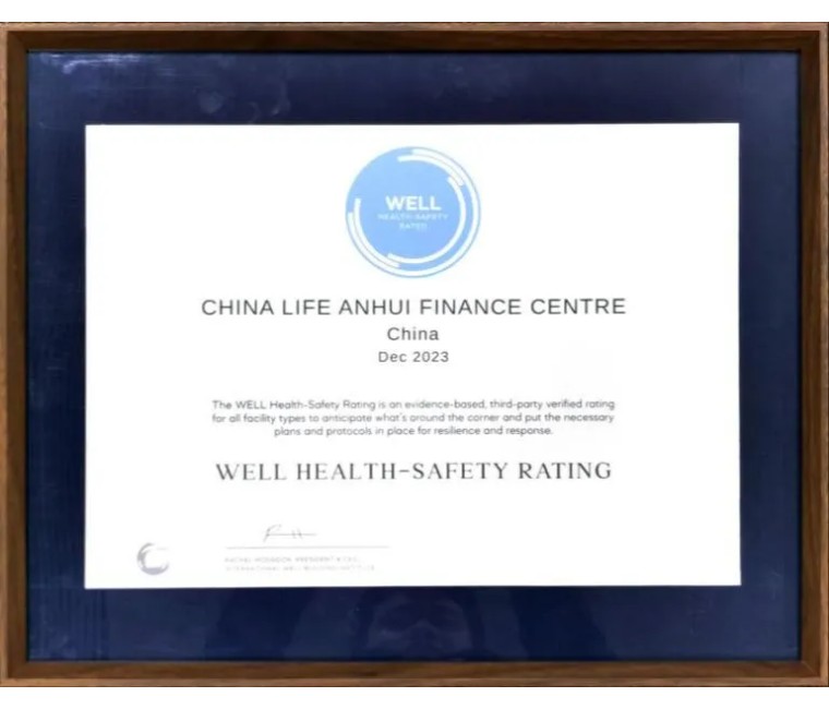 图:中国人寿安徽金融中心获得WELL HSR认证