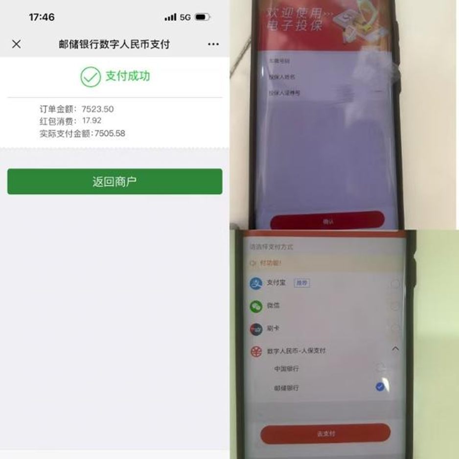 近日,人保财险宿迁市分公司“人保财险数币支付系列营销活动”正式上线,活动当天顺利为客户办理缴费7523元,随机立减优惠17.92元。